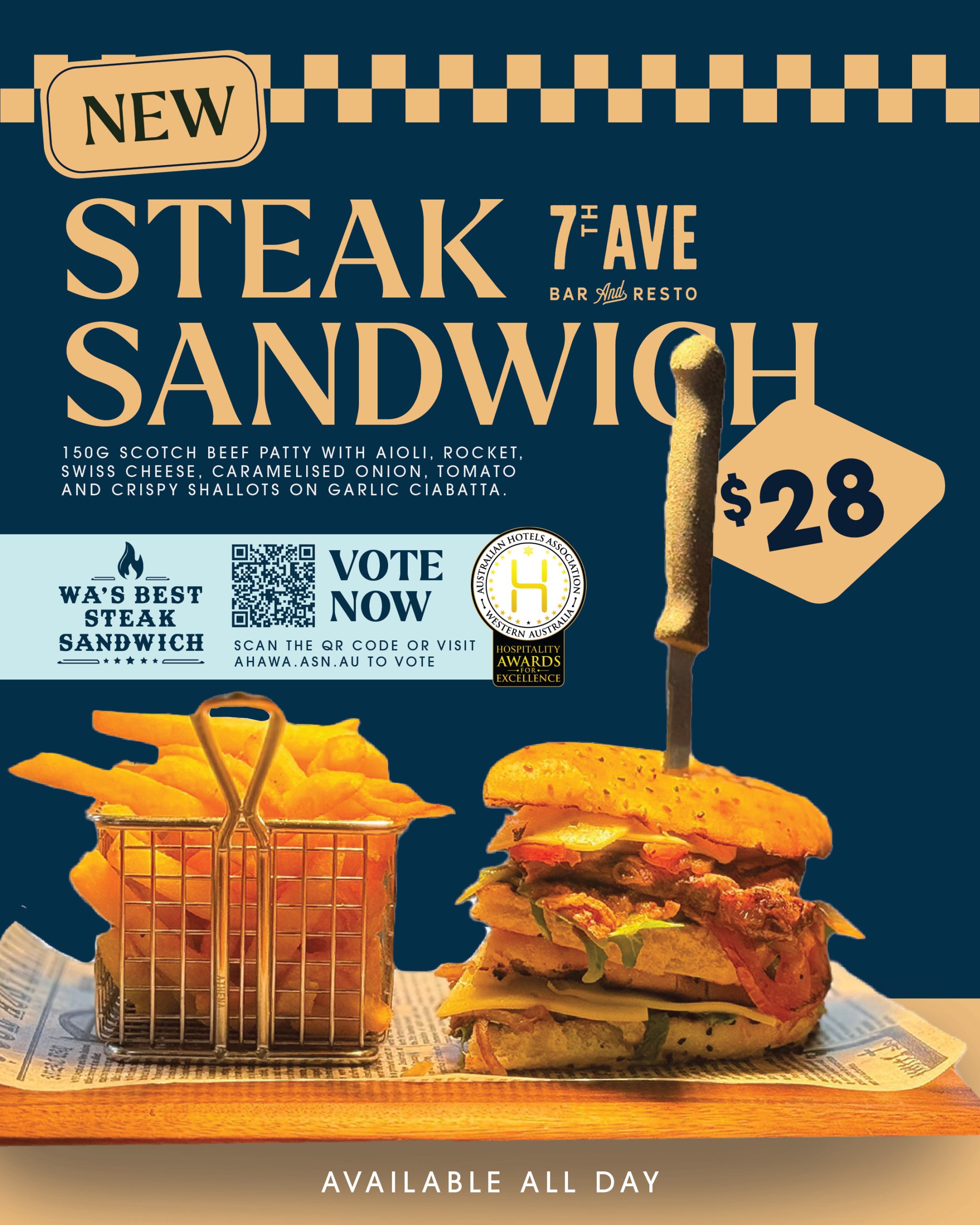 Enjoy the relaxed atmosphere and great food at the 7th Ave Bar & Restaurant. We’re located in the heart of the historic Midland CBD, just steps away from the Midland Town Hall. Our establishment features a lively bar, a kid-friendly restaurant, an inviting alfresco dining area, and a spacious private function room – the perfect space for your next event!